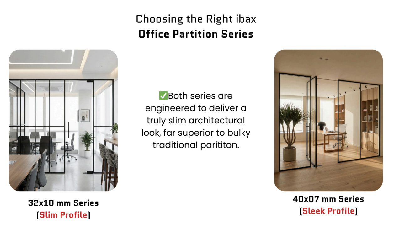 ✔ Both series are engineered to deliver a true slim architectural look, far superior to bulky traditional partitions.