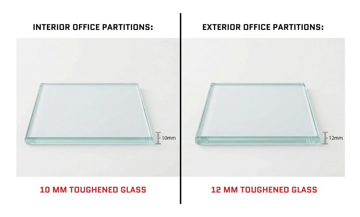 Exterior office partitions: 12 mm toughened glass