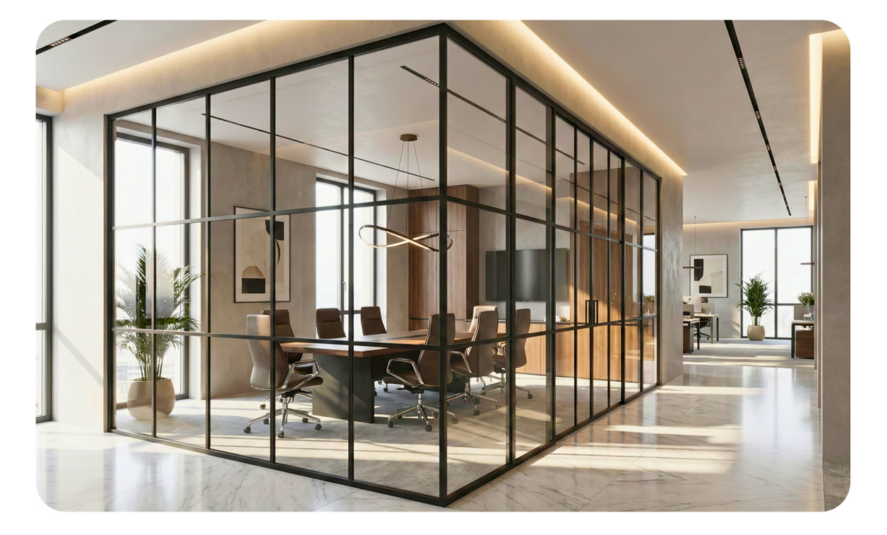 provides complete office partition solutions for modern workspaces. Whether for corporate offices, studios, or premium