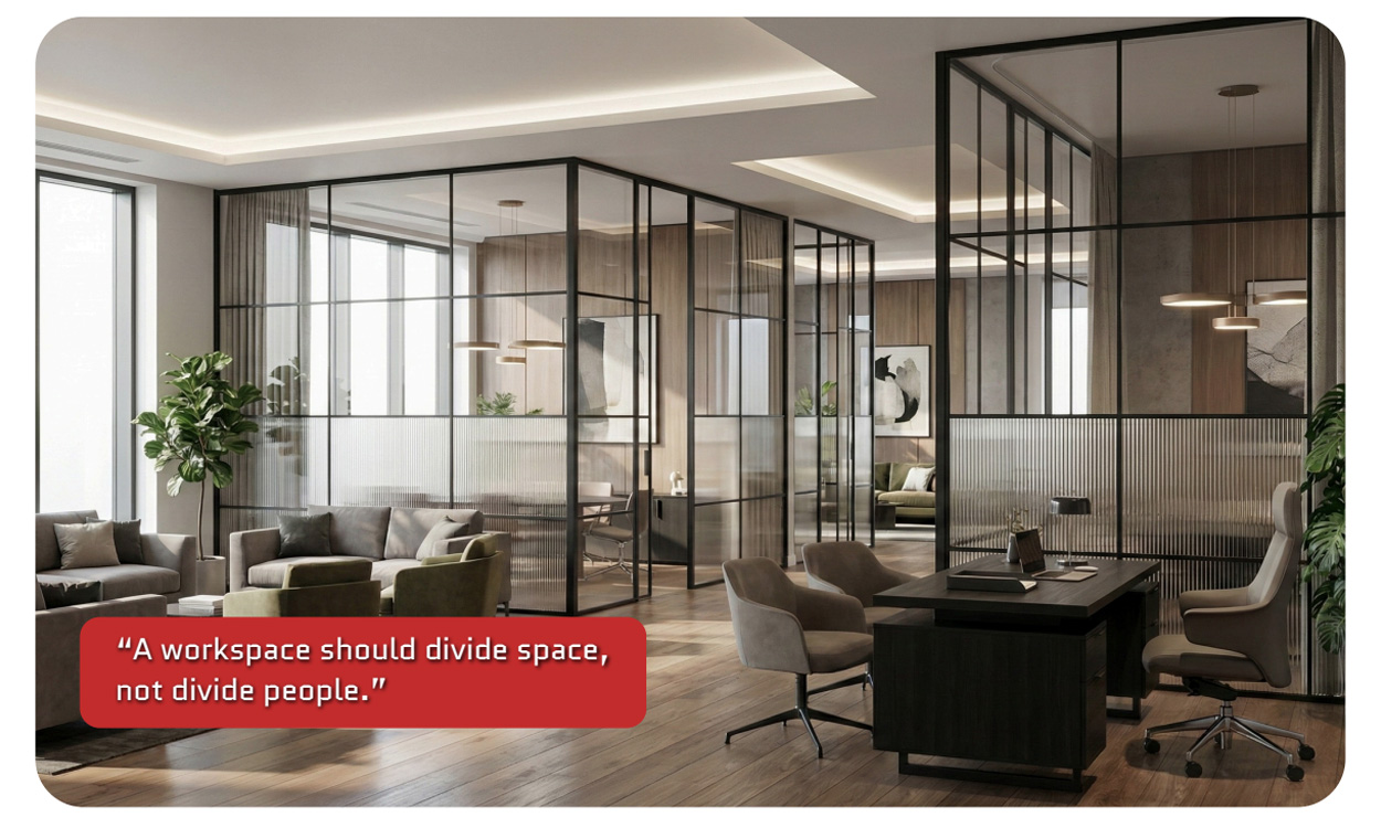 An office partition is like a conversation — it should create structure, not barriers.