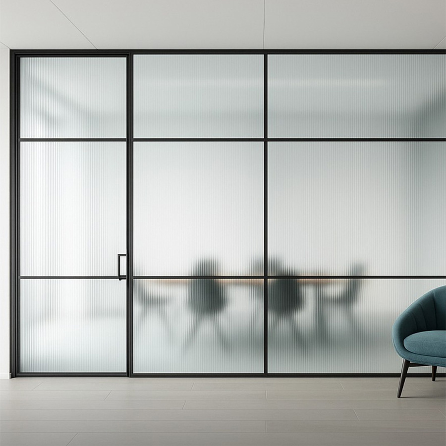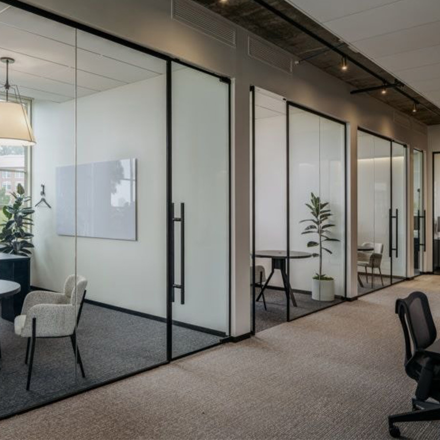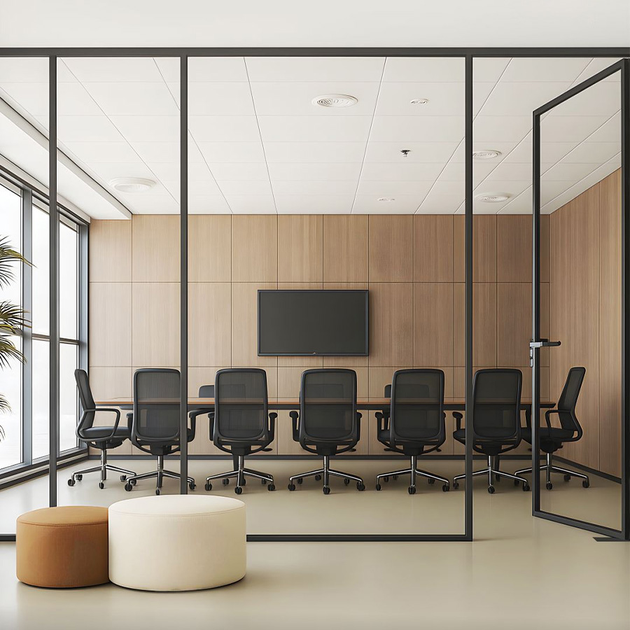 - System Type: Framed glass office partition system crafted for modern workspaces.